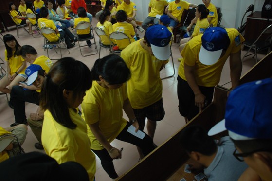 25日早,參訓人員在公司門口集合出發。本次活動由人力資源總部策劃實施,設計了二維解碼、數讀、大風吹、分組等團隊游戲和分享總結環節?;顒蝇F場,各組人員積極投入,尤其在二維解碼游戲中,大家更是將團隊精神發揮得淋漓盡致。每個組排成一個縱隊,前后兩人負責解碼和擺牌,中間的人則負責傳遞信息。大家緊密配合,縝密推理,通過團隊配合,排除各種障礙,最終達成目標。過程縱然緊張,但為能順利完成任務,大家都樂此不疲。