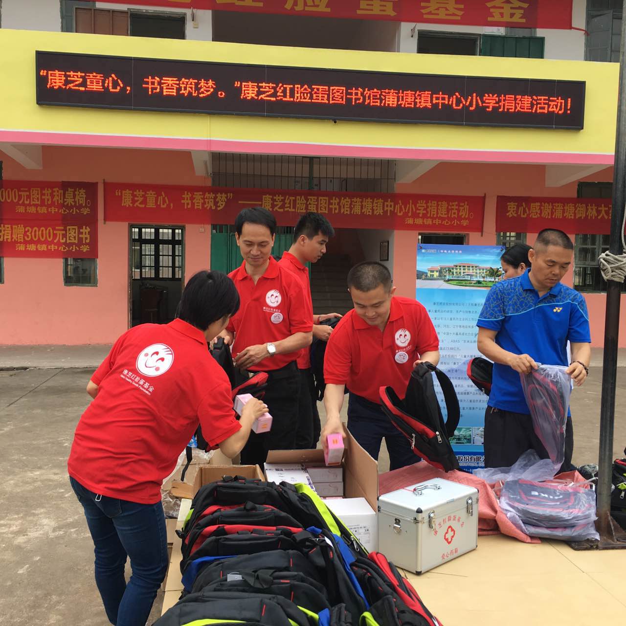 此次,康芝紅臉蛋基金為蒲塘鎮中心小學捐贈了一批圖書,并設立了紅臉蛋圖書館。興業縣農村信用社及御林堂大藥房也分別捐贈了部分圖書,康芝藥業合作伙伴劉肖肖還為學校的孩子們提供了愛心大藥箱。