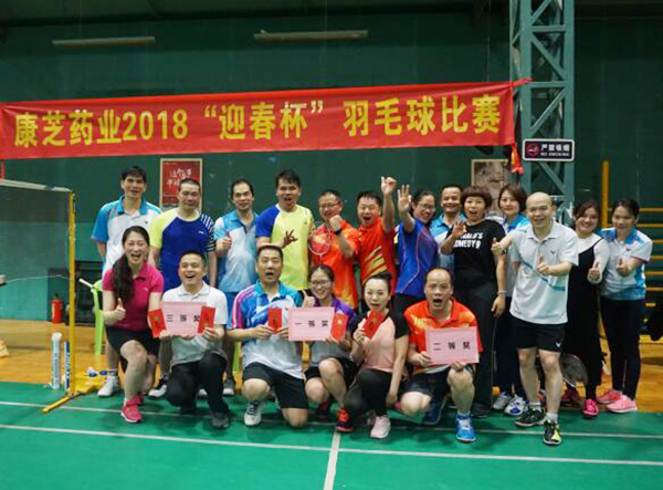 2月23日,康芝藥業(yè)2018“迎春杯”羽毛球比賽在區(qū)莊弘揚(yáng)羽毛球館圓滿舉行。康芝藥業(yè)董事長(zhǎng)洪江游、工會(huì)主席龍殿康、OTC事業(yè)部全國(guó)銷售總監(jiān)黃孝松、OTC事業(yè)部市場(chǎng)總監(jiān)陳艷杰,以及各個(gè)部門的同事一同到球館參加比賽。