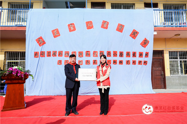 康芝藥業代表向學校贈送了愛心共建學校牌匾
