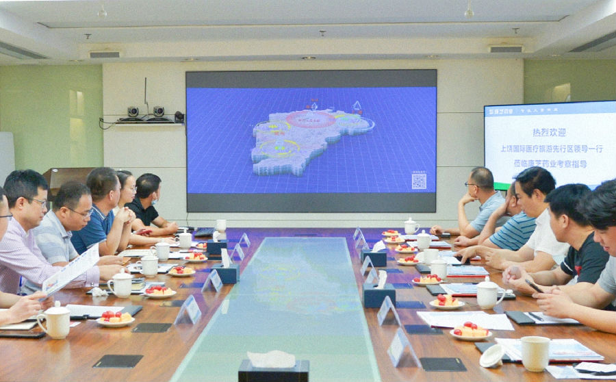 7月16日,國內四大“國際醫療旅游先行區”之一的上饒國際醫療旅游先行區暨上饒國家中醫藥健康旅游示范區管委會副主任洪軍、副主任寧武華,上饒先行健康產業發展有限公司董事長張更新等領導嘉賓一行蒞臨康芝藥業廣州總部考察交流。