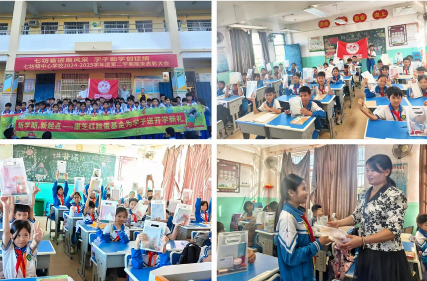 九月開學季,椰風送爽入校園。近日,康芝紅臉蛋基金走進海南省白沙黎族自治縣,為七坊鎮中心學校、打安鎮中心學校的1200余名學生捐贈了開學文具用品,用實用的學習物資,為孩子們的新學期注入溫暖力量。